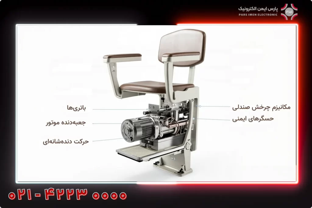 از نظر ایمنی نیز تدابیر کاملی در طراحی پلهپیما اندیشیده شده است. صندلیهای پلهپیما دارای کمربند ایمنی شبیه کمربند خودرو هستند تا کاربر هنگام حرکت کاملاً روی صندلی مهار شود و سقوط نکند. سنسورهای حساس به برخورد در بخش زیرین و کنارههای صندلی تعبیه شده که اگر در مسیر حرکت با مانعی برخورد کنند، دستگاه را به طور خودکار متوقف میکنند تا از آسیب جلوگیری شود. همچنین سیستم ترمز اضطراری (معروف به پاراشوت) در مکانیزم بالابر پلهپیما وجود دارد که در صورت بروز هرگونه اختلال مکانیکی (مثلاً پاره شدن کابل یا زنجیر کشنده)، فوراً عمل کرده و صندلی را در جای خود قفل میکند. تمامی این ویژگیها در کنار حرکت نرم و بدون لرزش صندلی باعث میشوند کاربر احساس امنیت و آرامش خاطر داشته باشد. پلهپیما به گونهای طراحی شده که تجربهای آسان و مطمئن از جابجایی را برای افراد کمتوان رقم بزند.